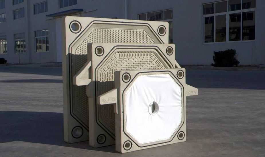 隔膜壓榨壓濾機是由隔膜板和廂式濾板排列組成濾室,在輸料泵的壓力作用下將料漿輸入濾室,通過過濾介質(濾布)將料漿中的固體和液體分離,當料漿中的固體形成餅后,再向隔膜通入空氣,對濾室內的固體充分壓榨。